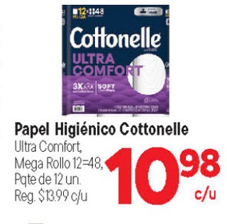Papel Higiénico Cottonelle Ultra Comfort, Mega Rollo 12-48, Pqte de 12 un.