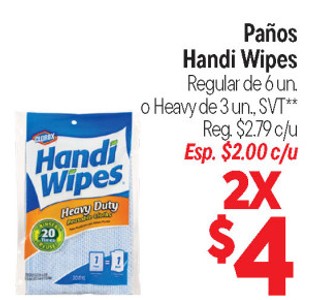 Paños Handi Wipes Regular de ó un. o Heavy de 3 un., SVT**.