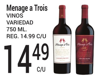 Ménage a Trois VINOS VARIEDAD 750 ML.