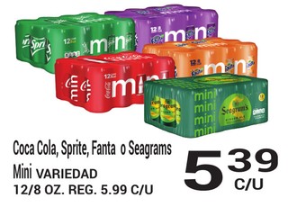 Cola Cola, Sprite, Fanta o Seagrams Mini VARIEDAD 12/8 OZ.