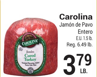Carolina jamon de pavo entero e.u. 1.5 lb.