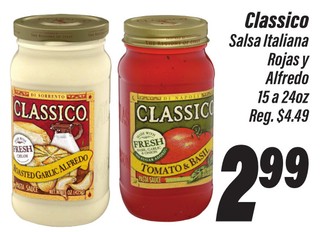 Classico Salsa Italiana Rojas y Alfredo 15 a 24oz.