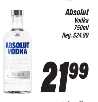 Absolut Vodka 750ml.