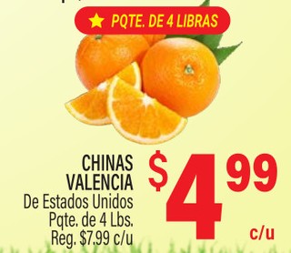 CHINAS VELENCIA De Estados Unidos Pqte. de 4 Lbs.