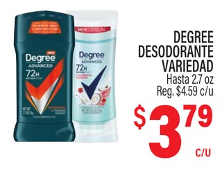 DEGREE DESODORANTE VARIEDAD Hasta 2.7 oz.