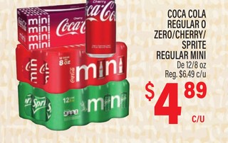 Coca cola regular o zero, cherry o sprite regular mini de 12/8 oz.