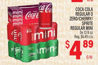 Coca cola regular o zero, cherry, sprite regular mini de 12/8 oz.