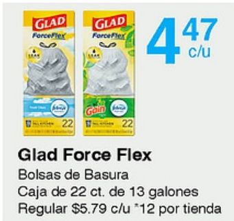 glad forceflex force flex bolsas basura caja alones regular $c/u *por tienda