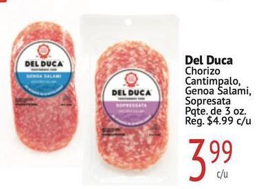 duca chorizo cantimpalo genoa salami, sopresata pqte reg. $c/u