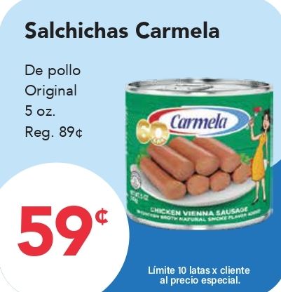 salchichas carmela pollo original reg. chicken vienna sausage natural smoke player lĂmite latas cliente precio especial.