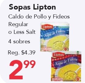 sopas lipton caldo pollo fideos regular less salt sobres $lipton sopa fiders elphon fide