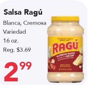 salsa ragĂș blanca cremosa variedad reg. $ragu alfredo sauce