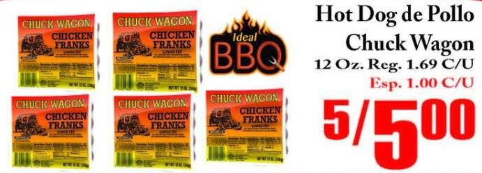 chuck wagon chicken franks ideal lower pollo reg. esp.