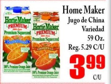 home maker premium homemaker squeezed orange juice jugo china variedad reg.