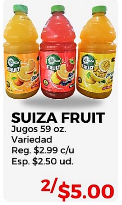 fruit suiza jugos variedad reg. $c/u esp. $ud.