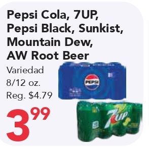 pepsi cola black, sunkist, mountain dew, root beer variedad reg. $pepsi