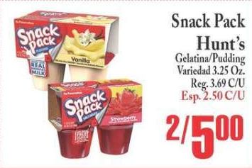 snack pack milk vanilla hunt's gelatina/pudding variedad reg. esp.