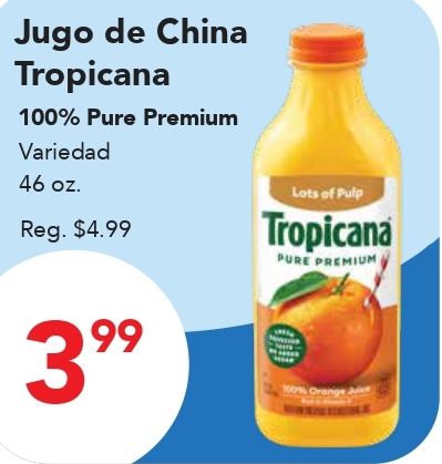 jugo china tropicana pure premium variedad reg. $lots pulp orange