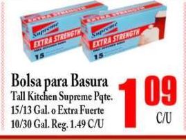 supreme extra strength strengt bolsa basura tall kitchen pqte /al. fuerte reg.