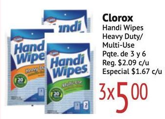 hand clorox indi handi wipes wipe heavy duty/ multi-use pqtede reg. $c/u especial