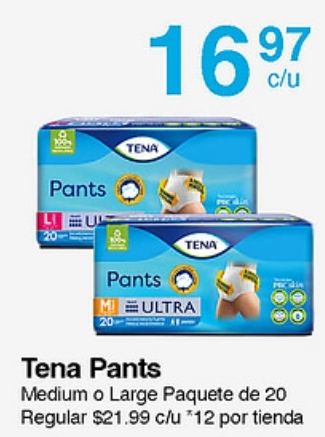 pants tena multra medium large paquete regular $c/u *por tienda