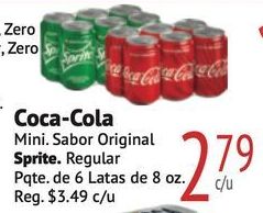 zero coca-cola mini sabor original sprite. regular pqte. latas reg. $c/u