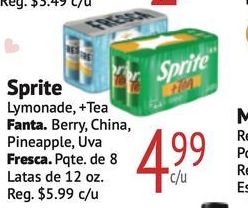 sprite lymonade+tea fanta berry, china, pineapple, fresca. pqte. latas reg. $c/u