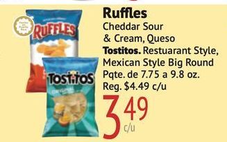 ruffles cheddar sour cream queso tostitos restuarant style, mexican style round pate. reg. $c/u