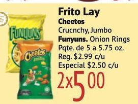 frito cheetos funluns crunchy jumbo funyuns onion rings pqte. reg. $c/u especial