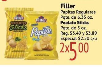 filler potato sticks papilas papitas regulares pqte poatato pqte. reg. $especial $c/u