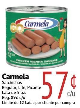 carmela chicken vienna sausage cken both natural shoke flavor salchichas regular lite, picante lata reg. lĂmite latas cliente compra