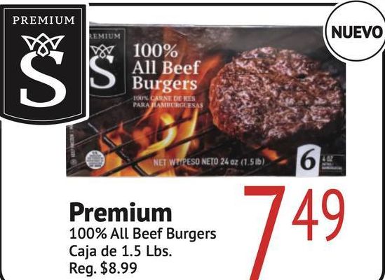 premium remium beef burgers carne hamburguesas wipeso neto caja reg.