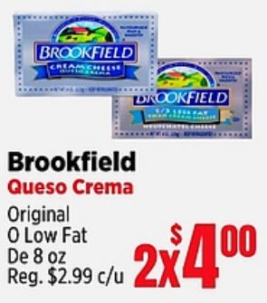 brookfield cream cheese drookfield queso crema original $c/u