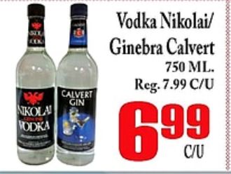 calvert nikola vodka nikolai/ ginebra reg.