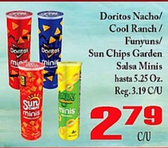 doritas doritos mimini minis nacho/ cool ranch/ funyuns/ chips garden salsa regc/u