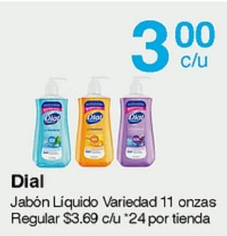 dial jabón líquido variedad onzas regular $c/u *por tienda