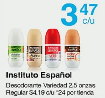 ispanc espanc espanol aven urea leche avona instituto espaƱol desodorante variedad onzas regular $c/u *por tienda