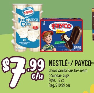 NESTLE / PAYCO Choco Vanilla Bars Ice Cream o Sundae Cups Pqte. 12 ct.