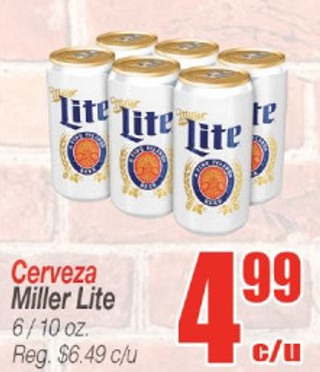Cerveza miller lite 6/10 oz.