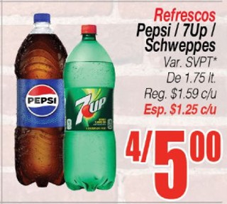 Refresco pepsi/ 7up/ schweppes var. svpt* de 1.75 lt.