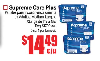 Supreme Care Plus Pañales para incontinencia urinaria en adultos, Medium, Large o XLarge de 14's a 18's