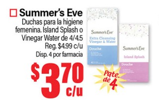 Summer's Eve Ducha para la higiene femenino , Island Splash o Vinegar Water de 4/4.5.
