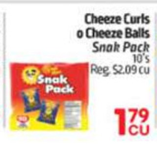 Cheeze Curls o Cheeze Balls Snak Pack 10's
