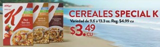 CEREALES SPECIAL K Variedad de 9.6 a 13.3 os. Reg. $4.99 cu