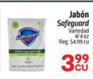 Jabon safeguard variedad 4/4 oz