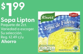Sopa Lipton Paquete de 2ct. Variedad a escoger Su seleccion.