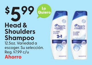 Head & Shoulders Shampoo 12.5oz. variedad a escoger.