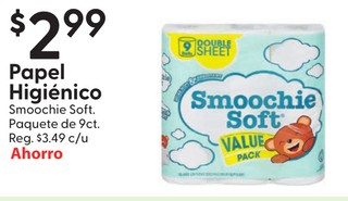 Papel Higiénico Smoochie Soft. Paquete de 9ct.