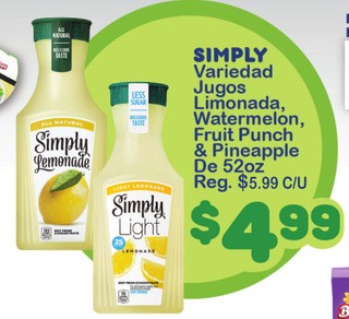 SIMPLY Variedad Jugos Limonada, Watermelon, Fruit Punch & Pineapple De 52oz