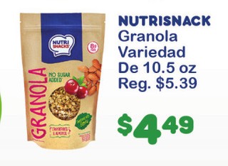 Nutrisnack granola variedad de 10.5 oz.